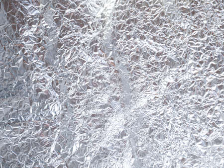 sheet of silver leaf aluminum foil background with shiny crumpled uneven surface