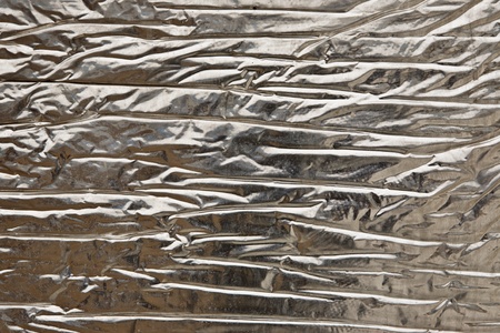 Crumpled foil is reflecting light, creating an abstract metallic background