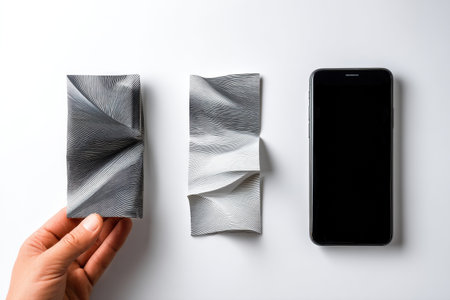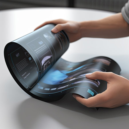 A hand holds a folded phone that shifts into a wearable device, highlighting the innovative transition between distinct tech forms in a sleek design.