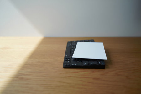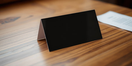 Blank card on wooden table. generated by ai