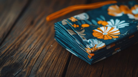 Beautiful floral print fabric rests on a warm wooden surface, showcasing bright colors and intricate patterns, ideal for various crafting and sewing projects.