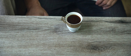 Generative AI : wooden small tea cup and earthenware pot on wooden table outdoor drinking