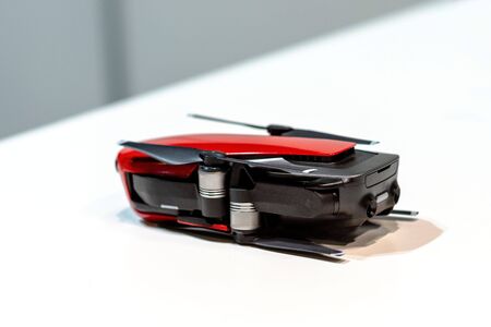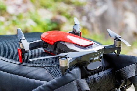Compactly folded drone. Action. Simple and practical design of folded drone for easy carrying. New version of drone for professional aerial photography