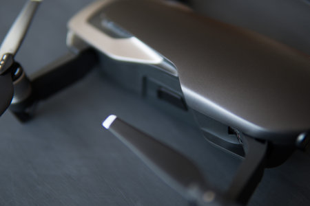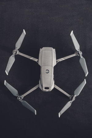 Kiev, Ukraine - March 09, 2019: DJI Mavic 2 pro with Hasselblad camera against gray background