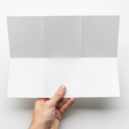 Two hands grasp a blank sheet of paper with a visible crease, positioned outdoors under natural light, suggesting intention or planning.