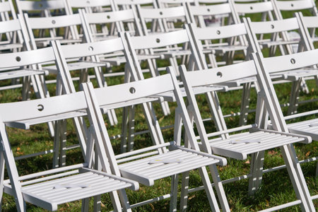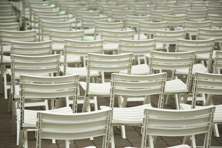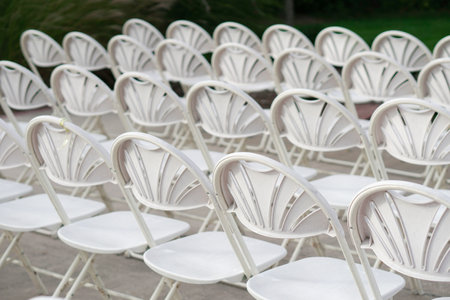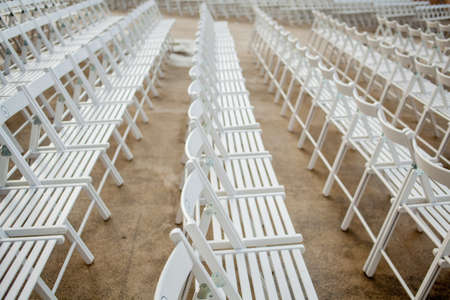Rows of chairs in a row at a wedding ceremony, selective focus