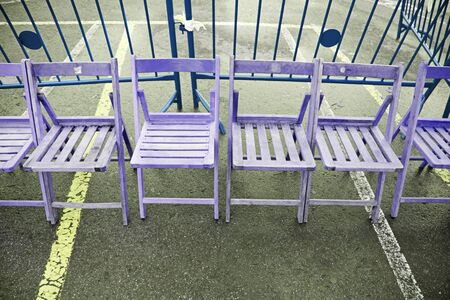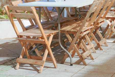 Folding wooden chairs. Traditional chairs used in popular outdoor festivals in the towns and cities of Spain.