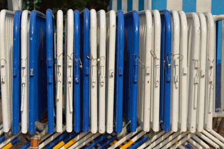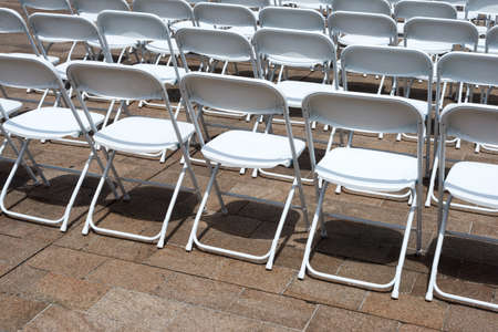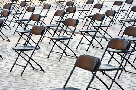 Rows of empty metal chair seats installed for some business event or performance,festival