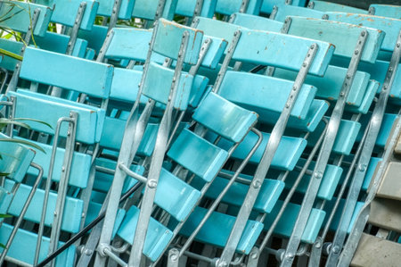 Vintage looking Rows of chairs for outdoor dehors alfresco bar and live gig concert open air events