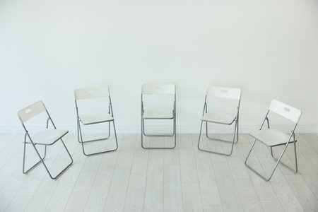 Part of lecture hall or spacious auditorium with group of chairs forming circle prepared for those who attending psychotherapy course