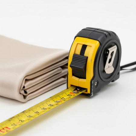 Panoramic 16:9 cinematic environmental shot capturing a yellow, coiled measuring tape abandoned mome