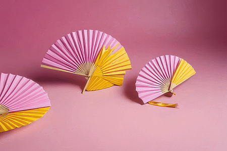 Abstract background with textured paper fans. Festive celebration backdrop. Mockup for product demonstration