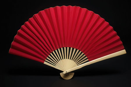 Ornate Paper Fan in Vibrant Setting. Concept of Cultural Artistry, Intricate Design, Asian Heritage, and Festive Ambience. Chinese New Year. Copy space.
