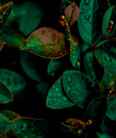 Vibrant leaves in autumn shades with droplets of water create a stunning natural display. Perfect for seasonal themes and nature-inspired projects.