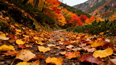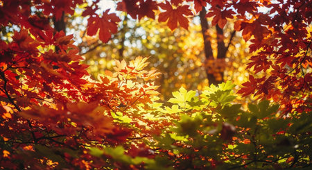 Vibrant Autumn Landscape with Colorful Maple and Oak Leaves Creating a Stunning Natural Tapestry