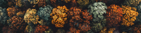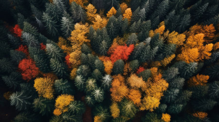 Autumn forest with colorful trees. above drone view. Generative AI.