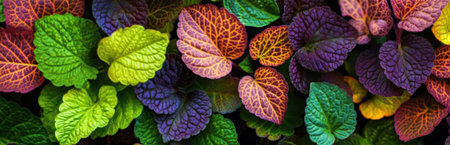 Close-up view reveals an artistic composition of various seedling leaves, exhibiting stunning colors and intricate details that highlight nature's diversity and vibrancy.