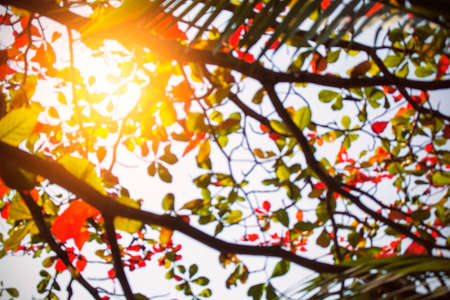 Creative beautiful colorful leafs in autumn for background and backdrop. This is wallpaper for decorate of advertisement.