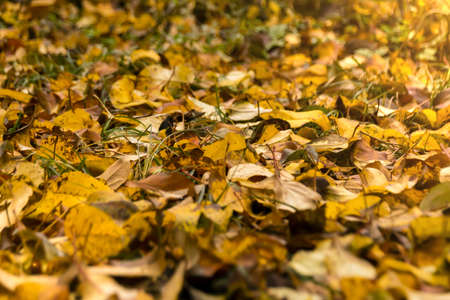 fallen leaves on the ground in the park in autumn for background or texture use. Natural autumn background.