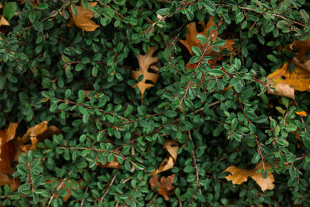 Close up of lush green hedge with small leaves eco friendly evergreen garden wall texture