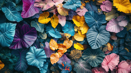 Explore the vibrant interplay of colorful leaves in this abstract nature background, perfect for creative projects or as a calming decoration.