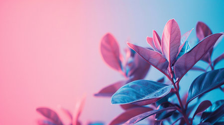 Close up of house plant in light blue and pink color with copy space
