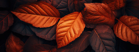Autumn foliage display vibrant leaves in rich hues, arranged as a blanket, top view, flat lay