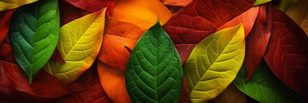 A captivating close-up of autumn leaves in a myriad of warm and deep hues. The vibrant colors and textures create a stunning natural masterpiece.