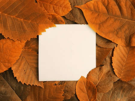 Background of yellow leaves with a paper form