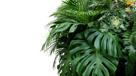 Monstera and tropical leaves foliage plant bush floral arrangement nature backdrop isolated on white background, clipping path included.