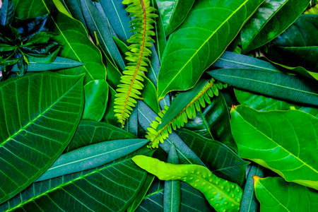 Green leaves. Nature background. Tropical foliage nature.
