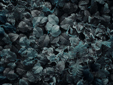 Dark green leaves pattern background, Natural background and wallpaper. Black tropical abstract green grass texture. Ornamental plant in the garden. Eco wall. Organic natural background