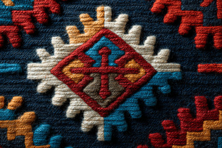 A vibrant abstract background featuring traditional handmade or woven textiles from Peru, South America. AI Generated