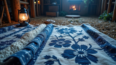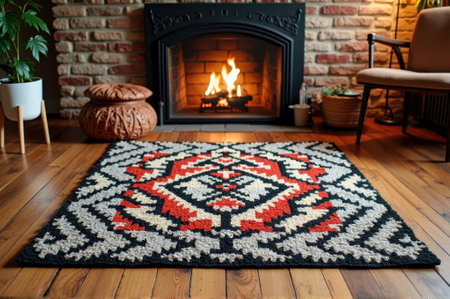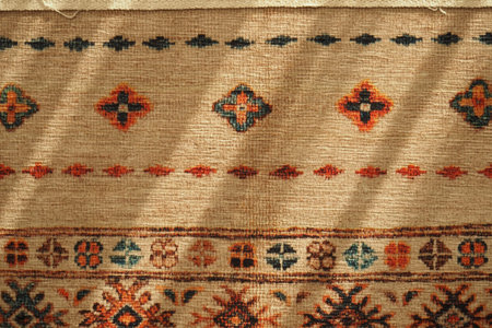 Warm sunlight illuminating a beautiful patterned rug indoors