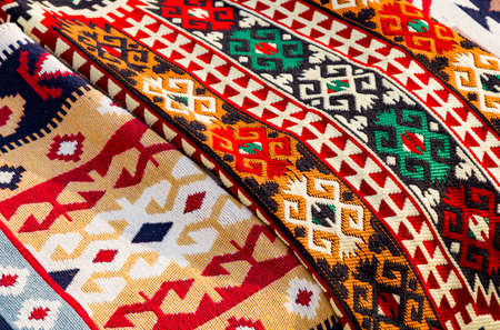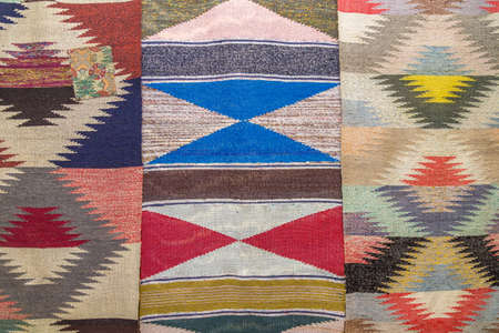 a beautiful interesting background with handmade Turkish rugs in close-up