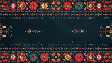 Cinematic texture of intricate tribal patterns with rich colors and designs