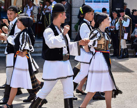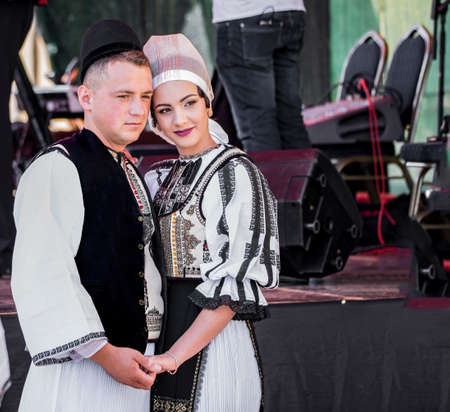 TIMISOARA, ROMANIA - JULY 5, 2018: Romanian dancers in traditional costume present at the international folk festival
