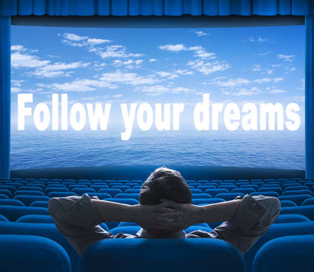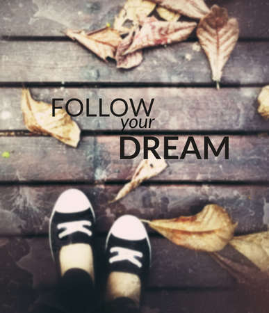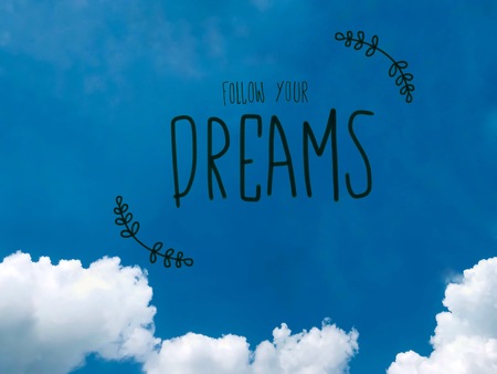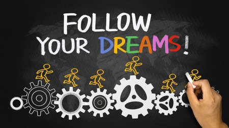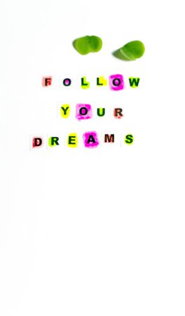 The phrase follow your dreams is standing in the frame, choaching concept, positive and optimistic thinking, having a goal