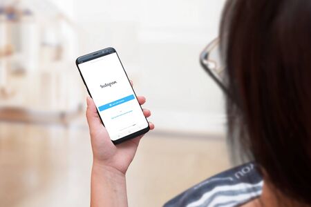 CHIANG MAI, THAILAND - OCT 4, 2020: A woman holds Apple iPhone X with Instagram application on the screen. Instagram is a photo-sharing app for smartphones.