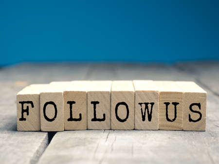The words Follow us on a wooden blocks, social media concept