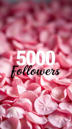 Celebrating a milestone with a vibrant display of pink flower petals and a message of 5000 followers at a joyful event