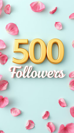 Celebration of reaching 500 followers with decorative petals on a light blue background