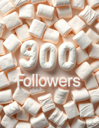 Celebrate reaching 900 followers with a fun display of marshmallows on a creamy background