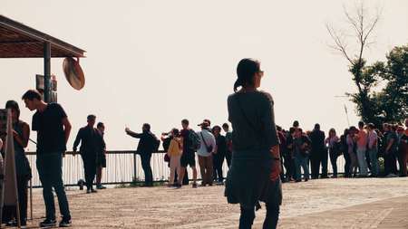 BARCELONA, SPAIN - APRIL, 16, 2017. Tourists making photos at city viewing point