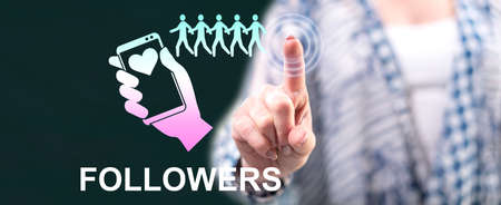 Woman touching a followers concept on a touch screen with her finger