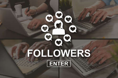 Followers concept illustrated by pictures on background