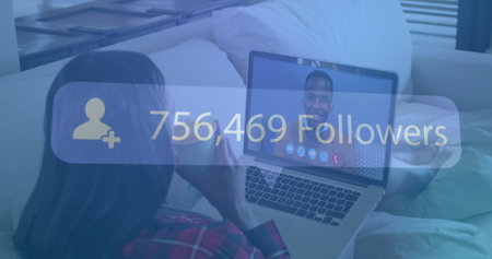 Young biracial woman watches a webinar. The overlay indicates a significant following, suggesting a popular online event or influencer.