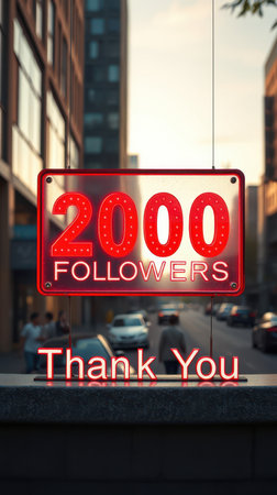 Celebration of reaching 2000 followers in a bustling urban environment during golden hour