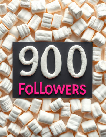 Celebrate reaching 900 followers with a fun display of marshmallows on a creamy background