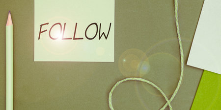 Hand writing sign Follow. Business idea to come after something in time or place or as part of a series